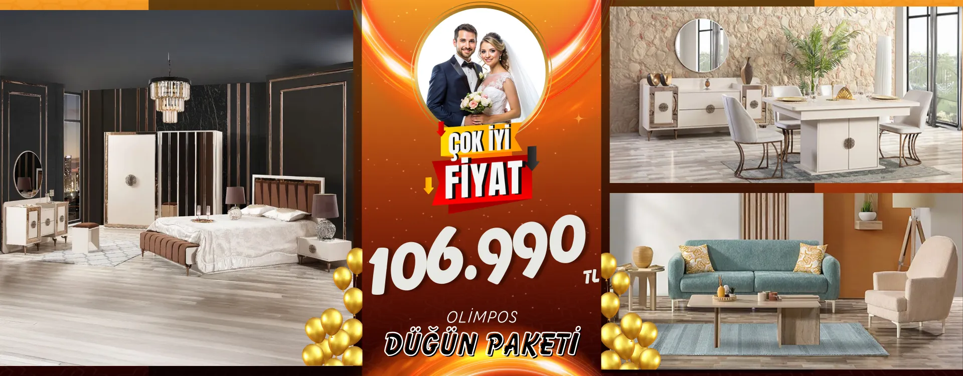 Özbay Mobilya’nın Düğün Paketleri, yeni bir hayata başlarken ihtiyaç duyduğunuz tüm mobilyaları uyumlu, şık ve ekonomik çözümlerle bir araya getirir. Small Düğün Paketleri 89.990 TL’den, Full Düğün Paketleri ise 129.990 TL’den başlayan fiyatlarla; kalite, estetik ve konforu tek pakette sunar. Tarzınızı seçin, yükünüzü hafifletin, yeni yuvanıza güçlü bir başlangıç yapın.