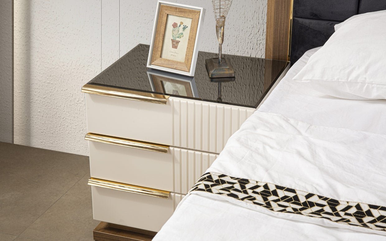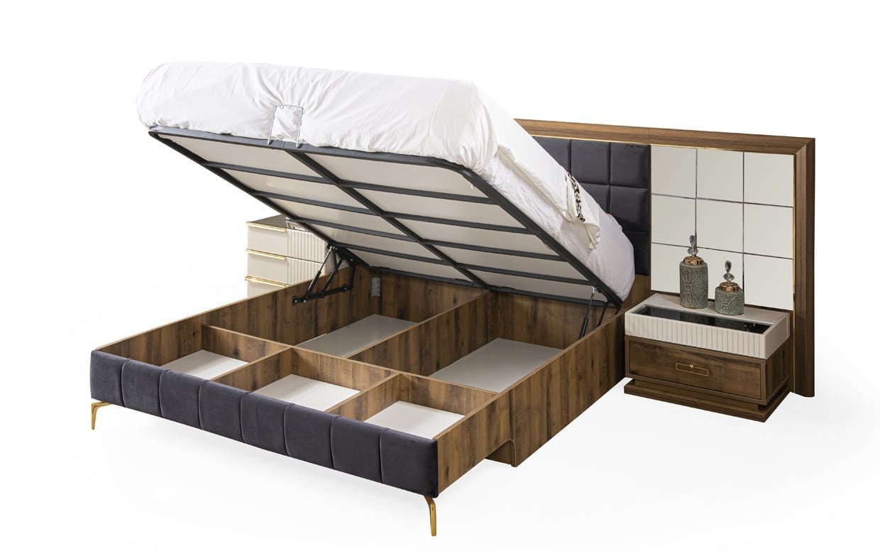 | Takım İçeriği | Yatak Odası takım içeriğinde 1 adet dolap, 1 adet başlıklı karyola, 2 adet komodin bulunmaktadır. |
