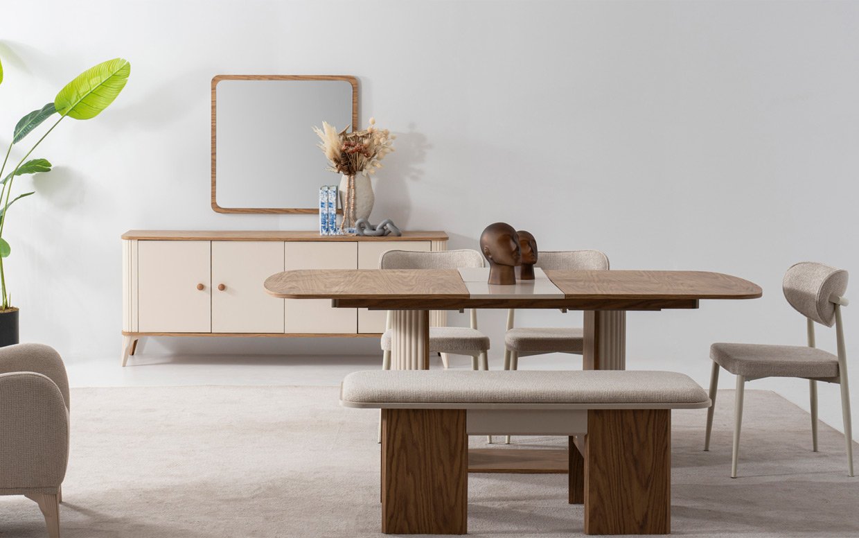 | Takım İçeriği | Yemek odası takım içeriği 1 adet konsol, 1 adet yemek masası ve 4 adet sandalye fiyatlandırmasıdır. |
