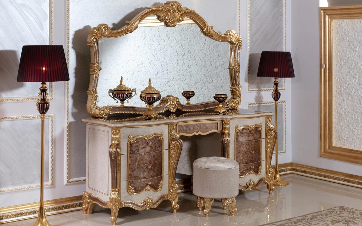 Hk İnci Klasik Kahve Gold Şifonyer ve Puf