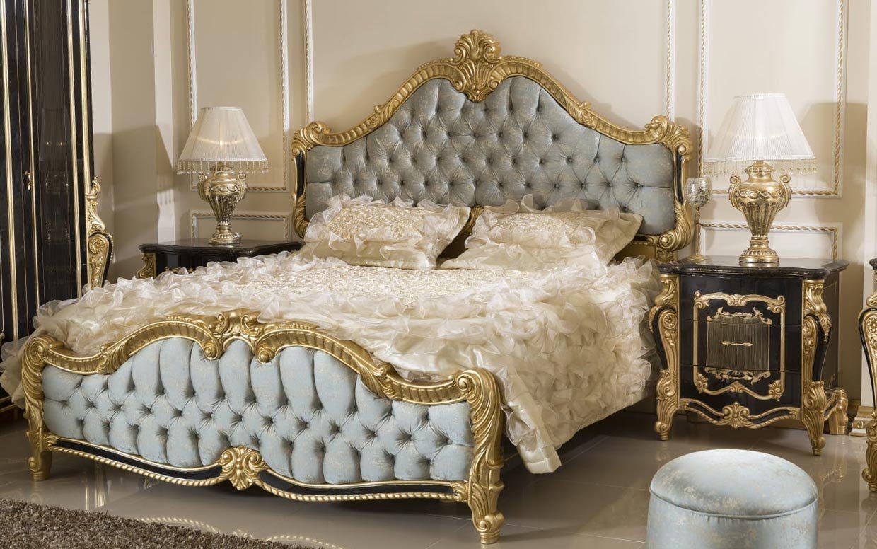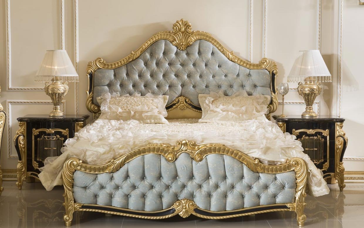 Hk İnci Klasik Siyah Gold Karyola ve Başlık (Bazasız)