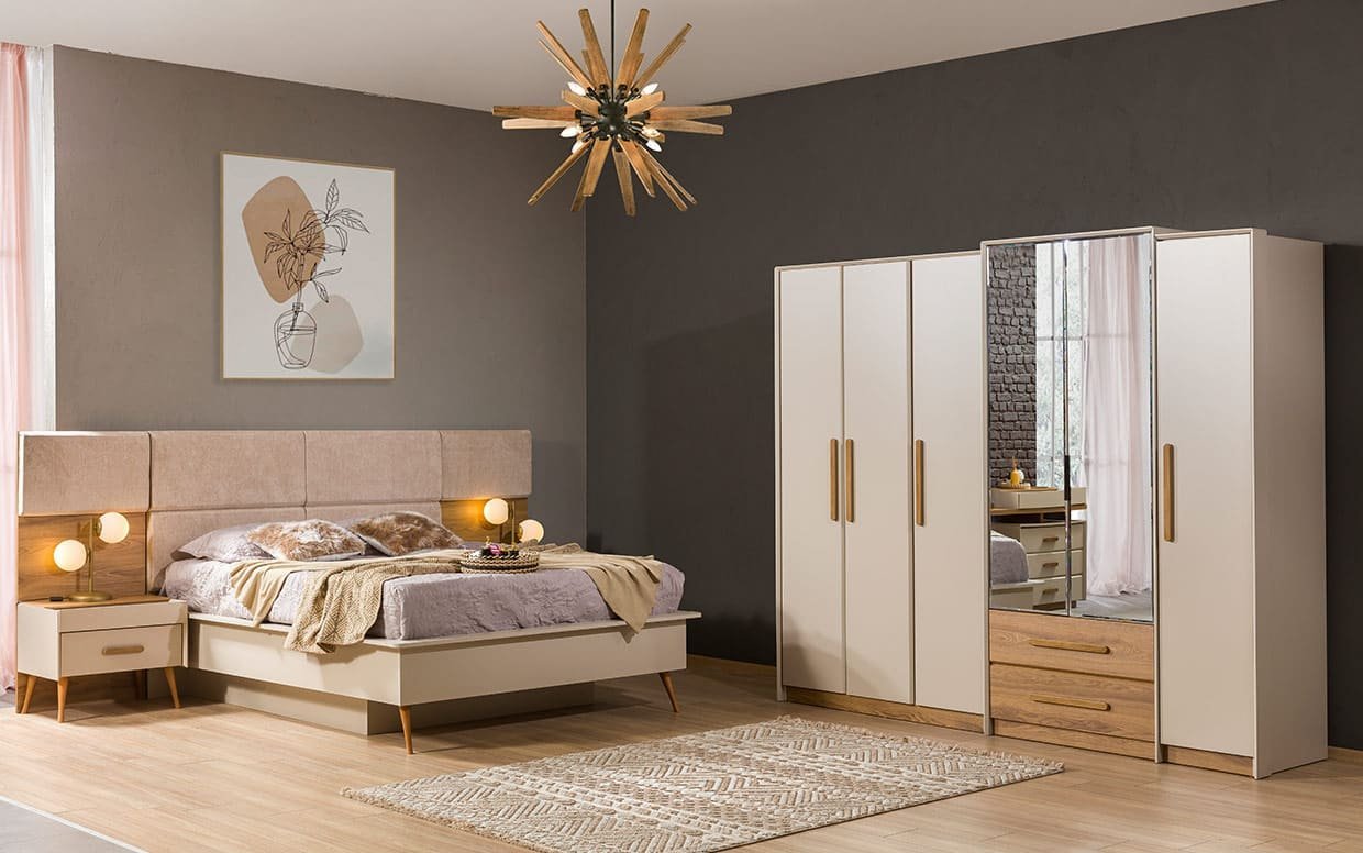 | Takım İçeriği | Yatak Odası takım içeriğinde 1 adet dolap, 1 adet başlıklı karyola, 2 adet komodin bulunmaktadır. |