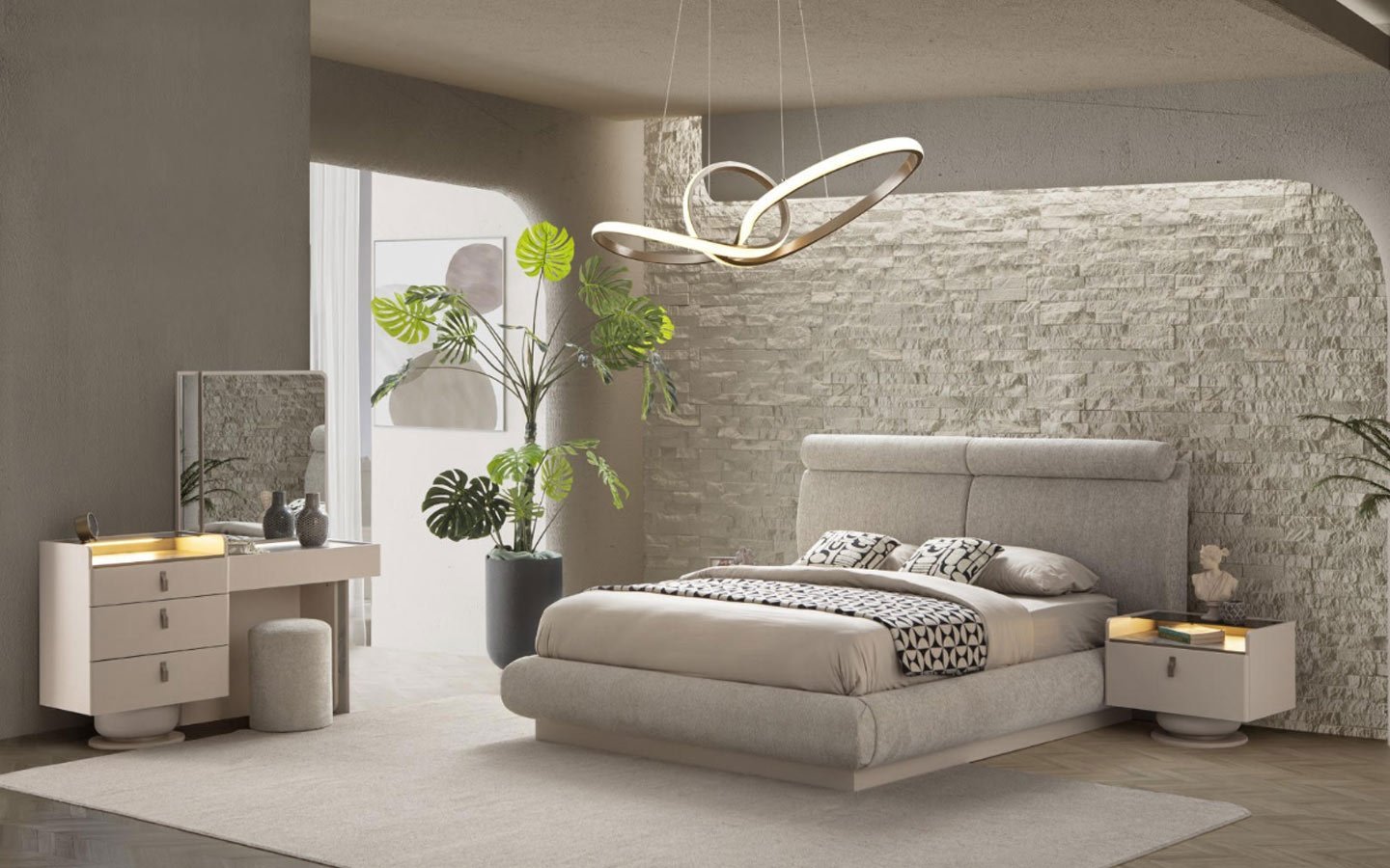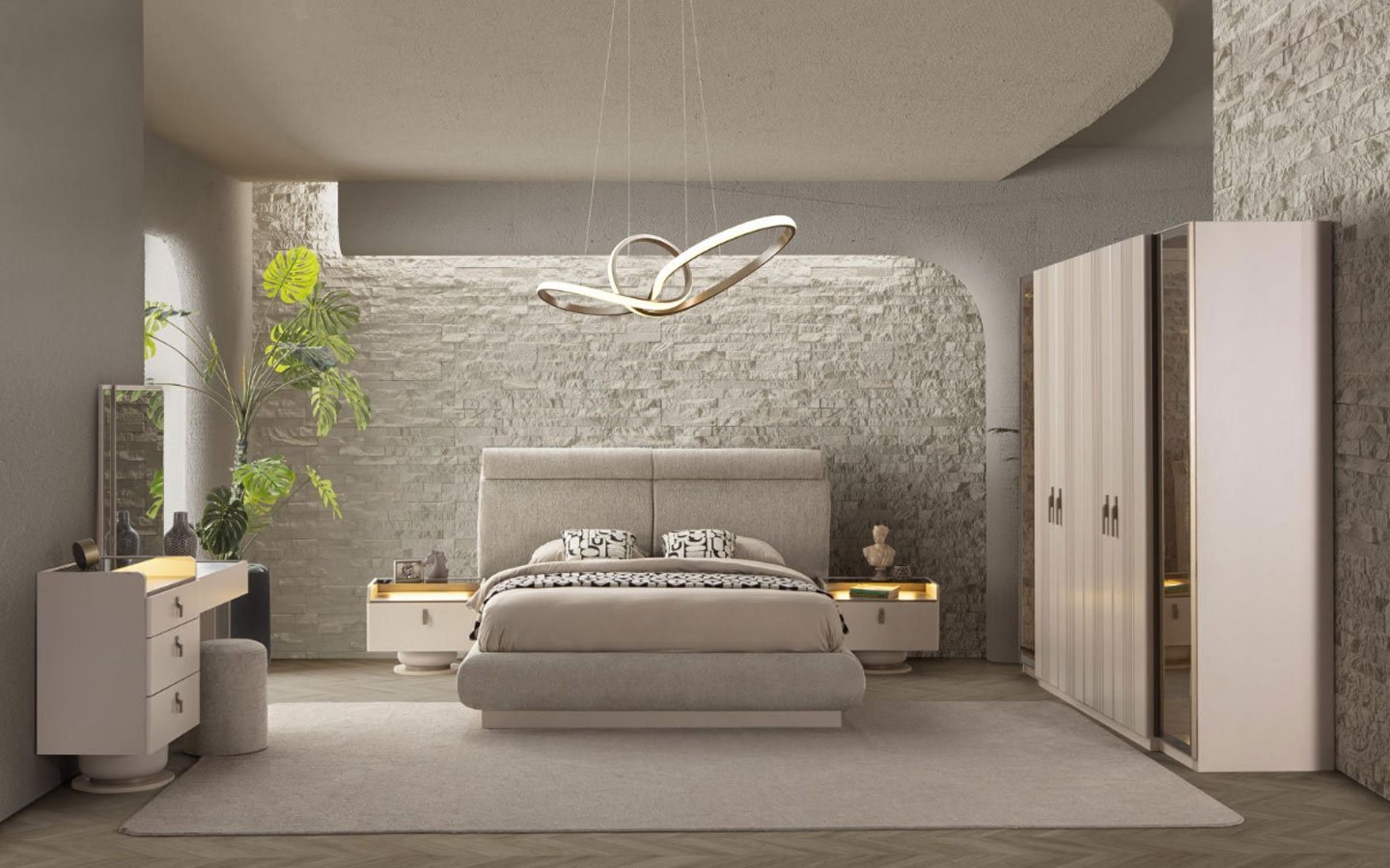 | Takım İçeriği | Yatak Odası takım içeriğinde 1 adet dolap, 1 adet başlıklı karyola, 2 adet komodin bulunmaktadır. |