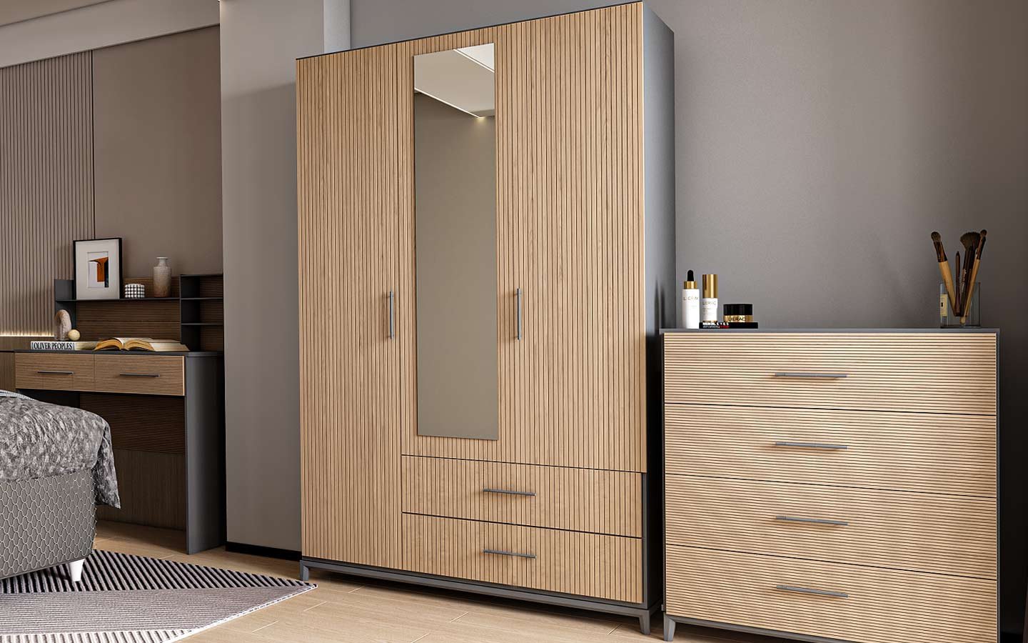 Neva Üç Kapaklı Dolap