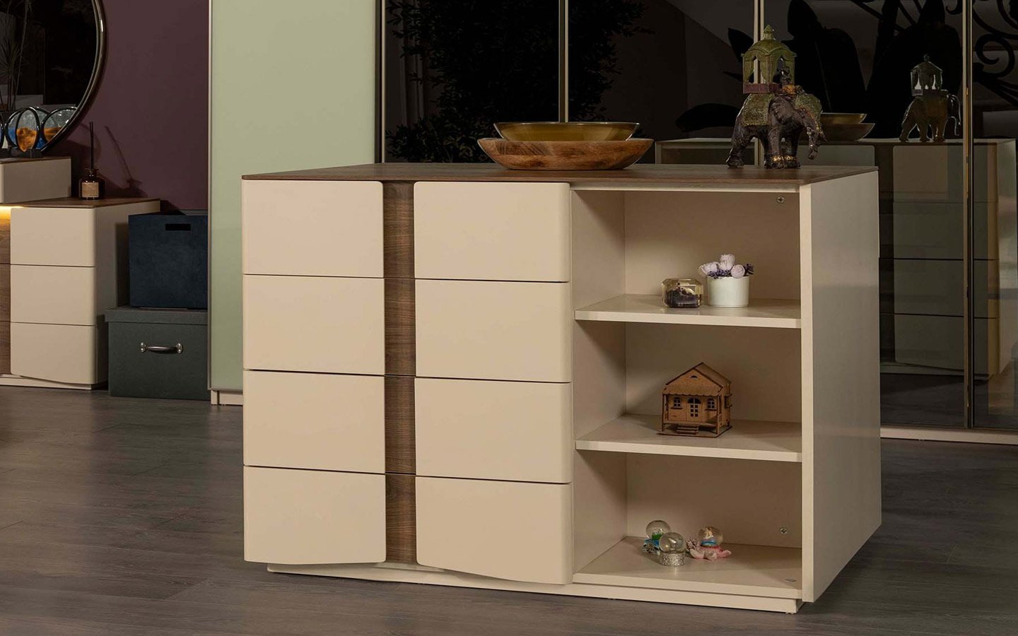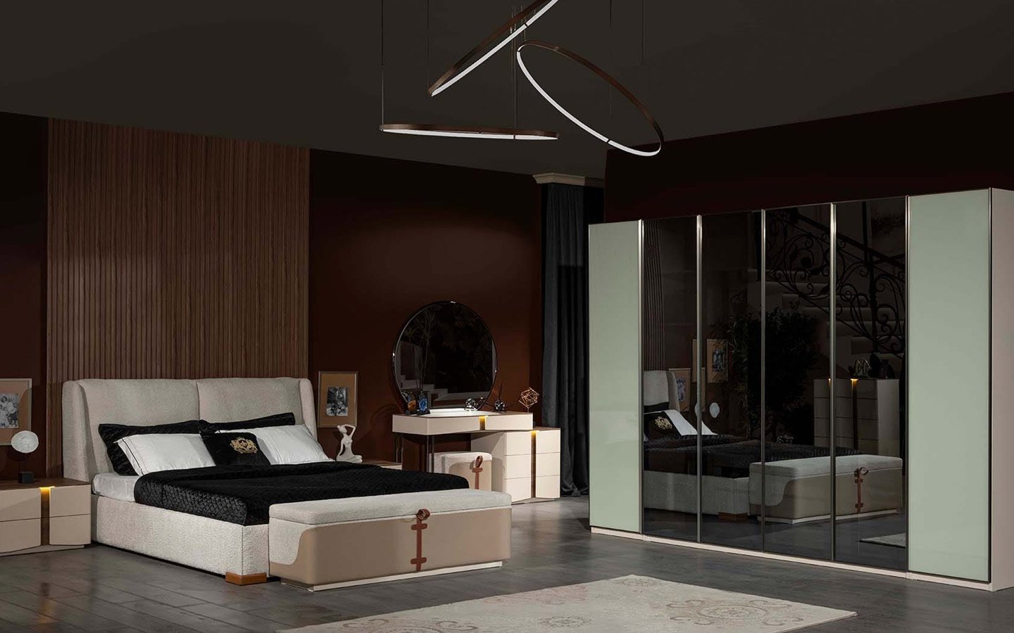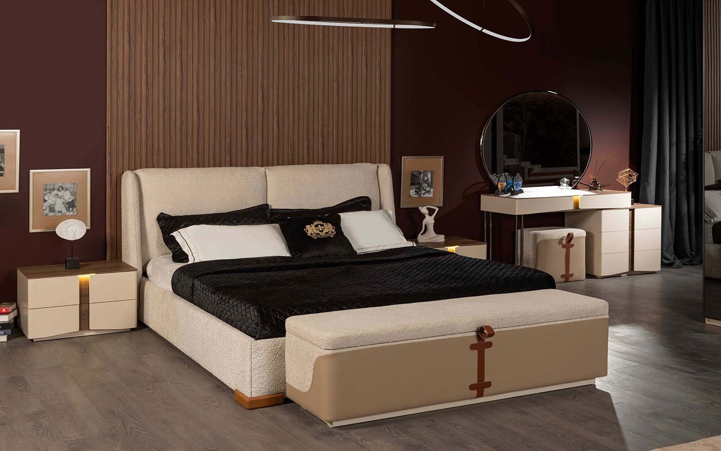 | Takım İçeriği | Yatak Odası takım içeriğinde 1 adet 4 kapaklı dolap, 1 adet başlıklı karyola, 2 adet komodin bulunmaktadır. |