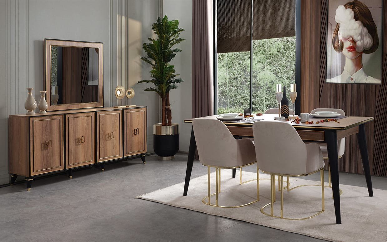| Takım İçeriği | Yemek odası takım içeriği 1 adet konsol, 1 adet yemek masası ve 4 adet sandalye fiyatlandırmasıdır. |